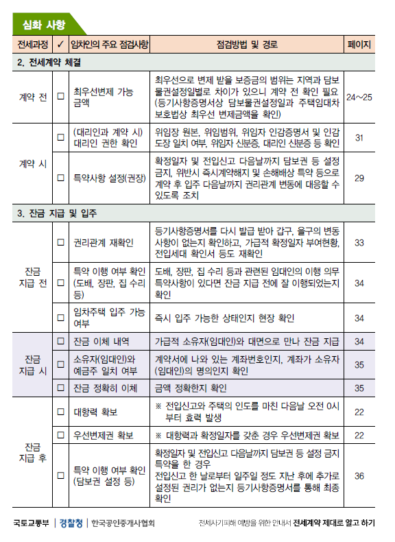 - 재계약 시에도 권리관계·보증금 조건 다시 점검